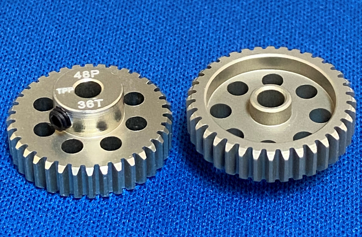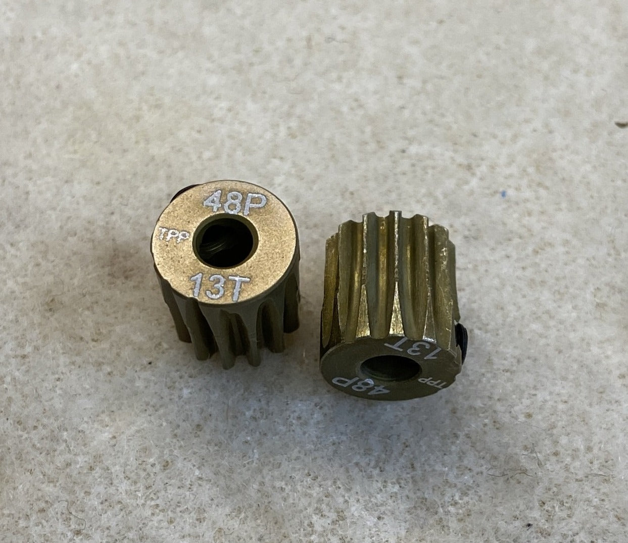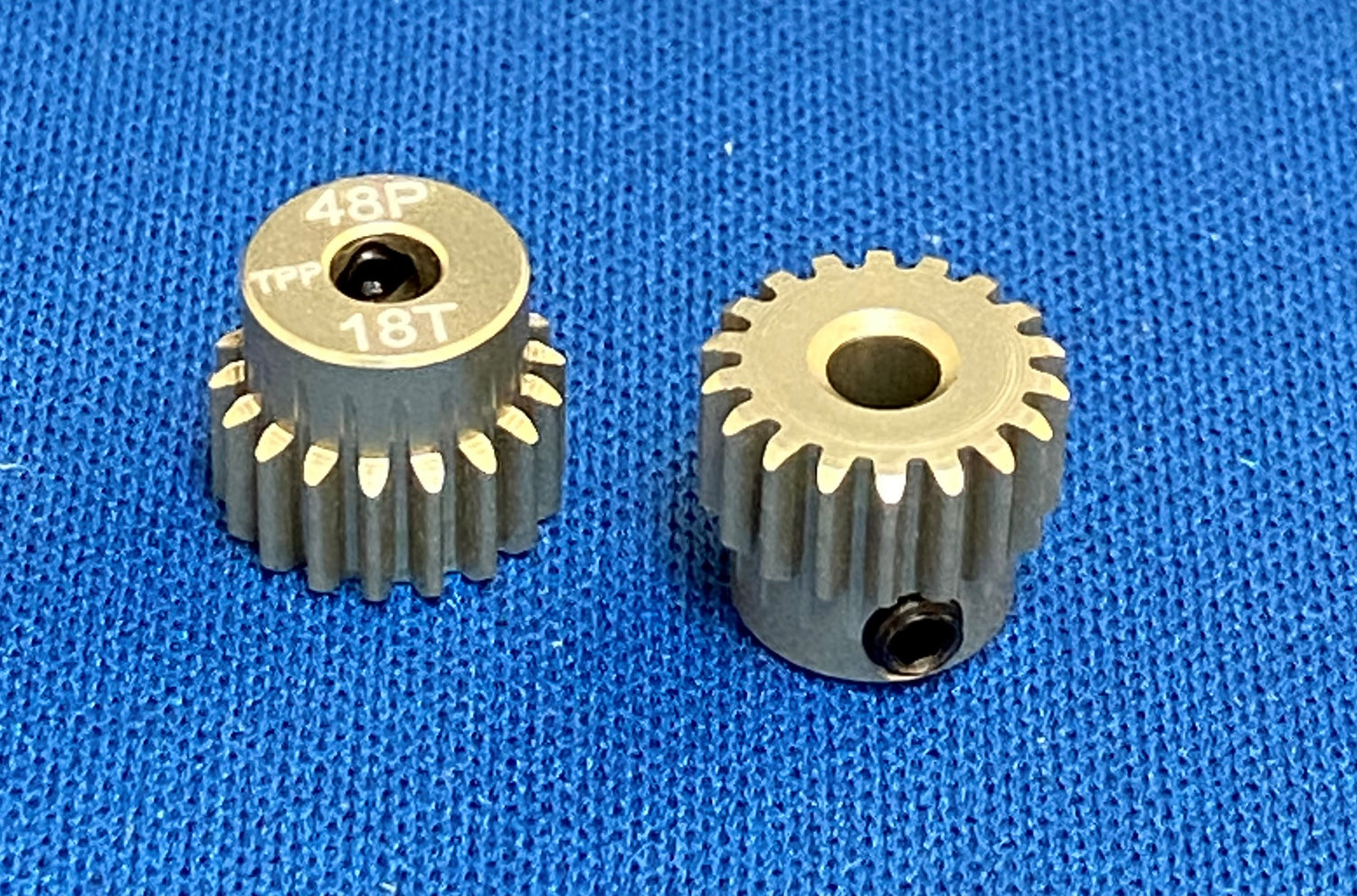 My PRO series motors need a 1/8" (3.175mm) PRO type pinion gear for highest performance. These hardened 7075 aluminum 48 pitch gears are precision machined for smooth operation and are lightened as much as practical (depending on tooth count) for low mass, which translates into more power and faster acceleration at your rear wheels! Under most race conditions they have low wear, but are not for the casual run through the backyard for longevity.