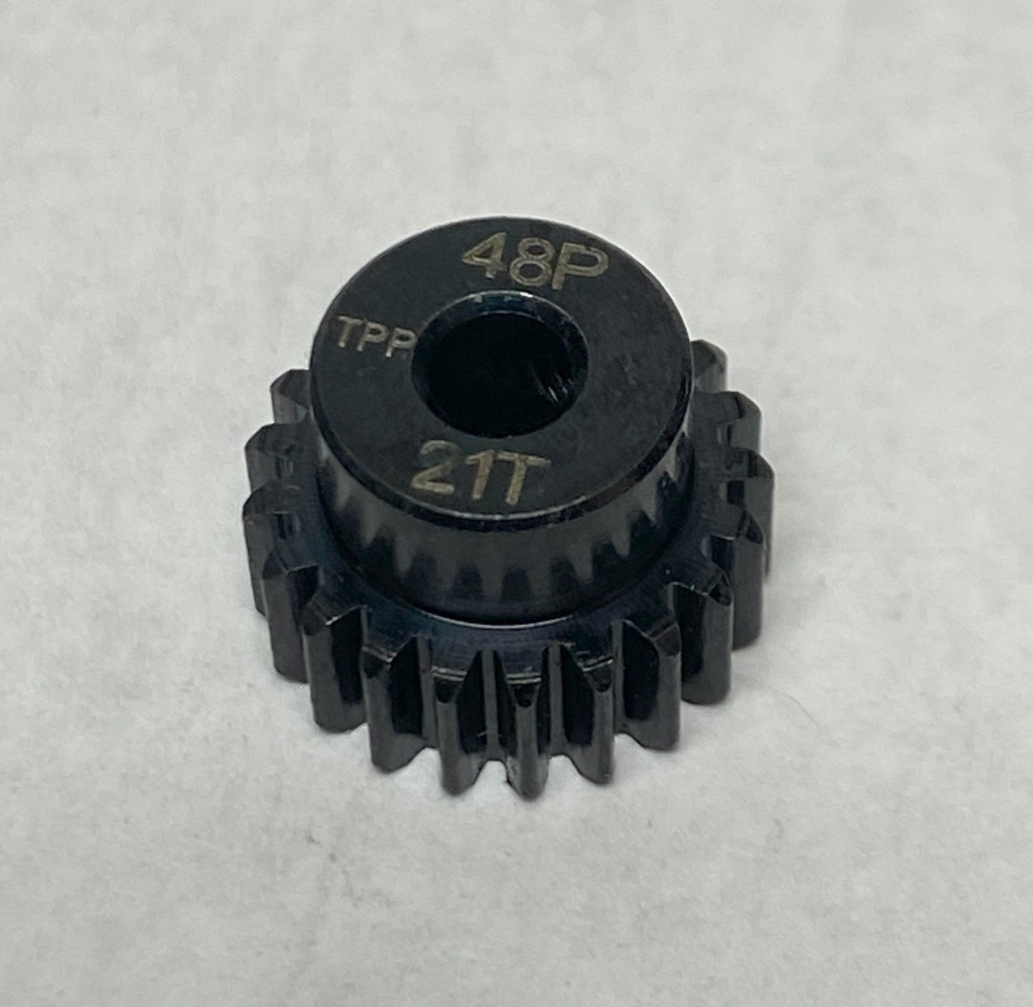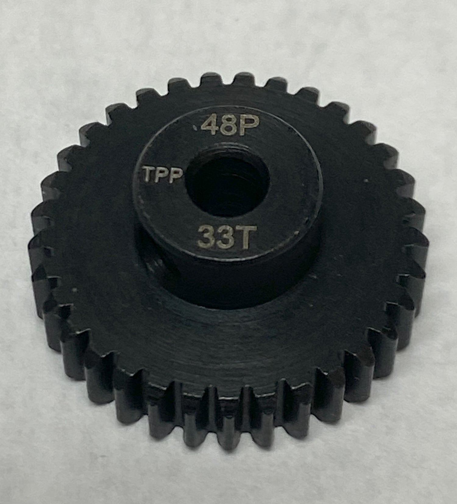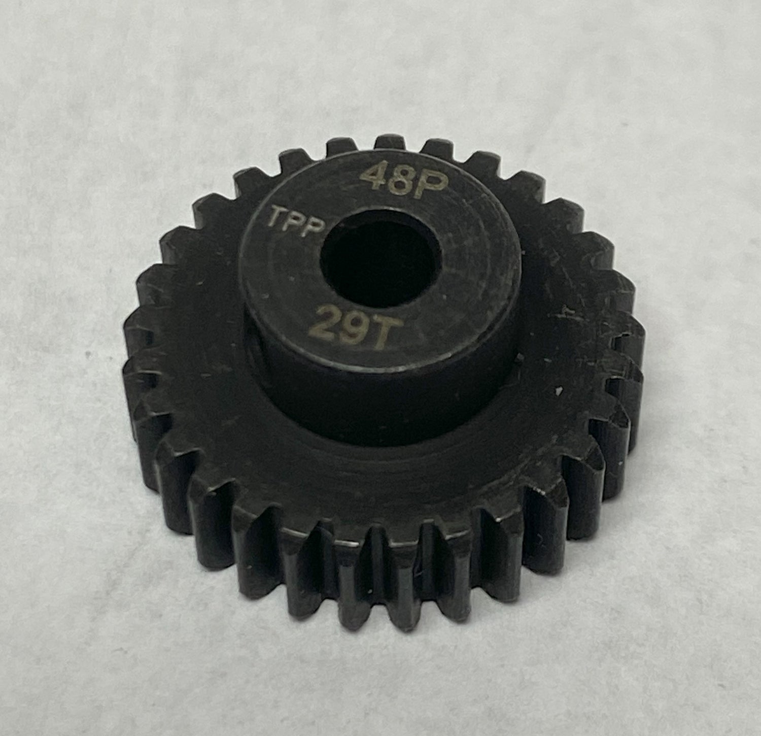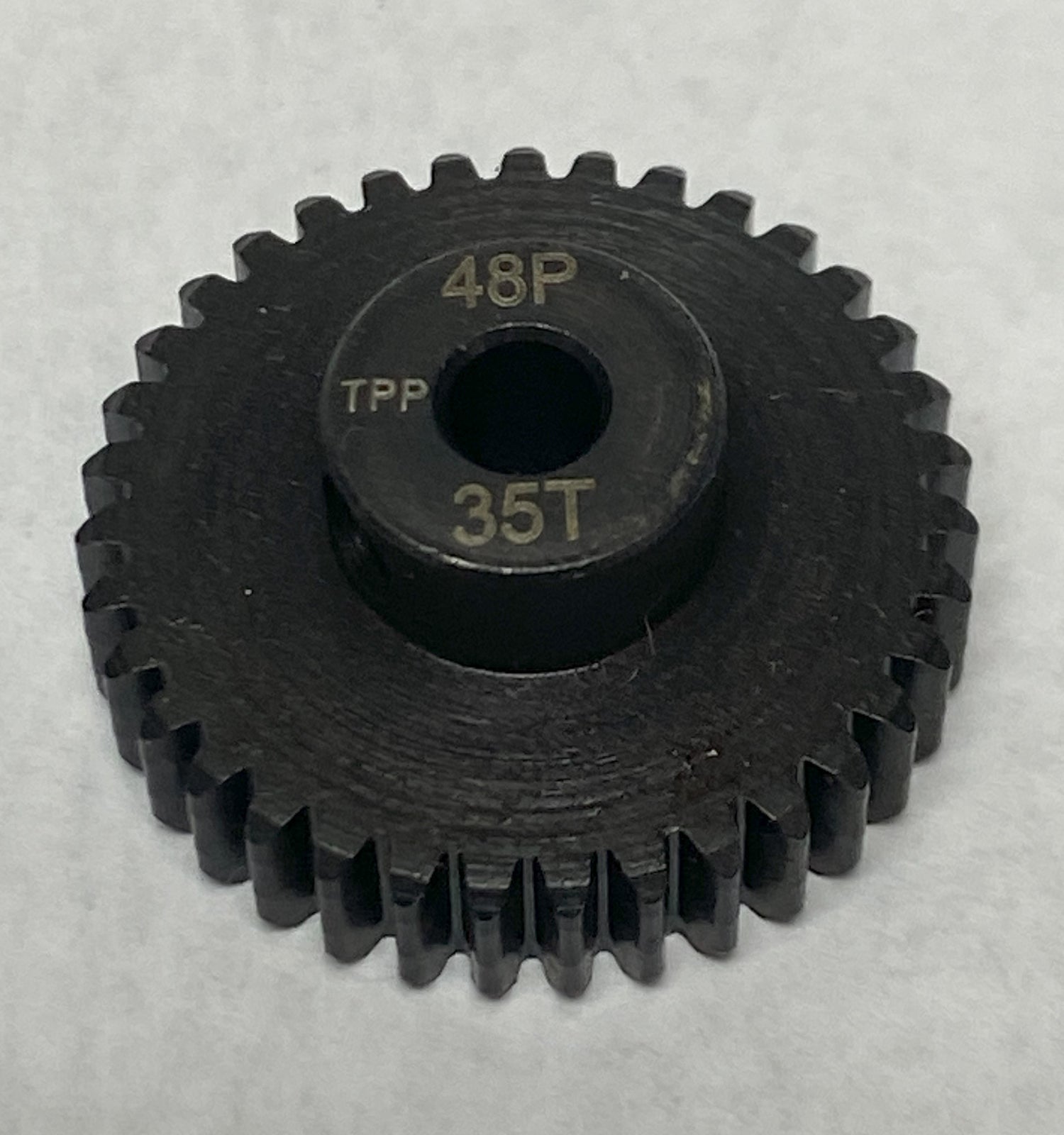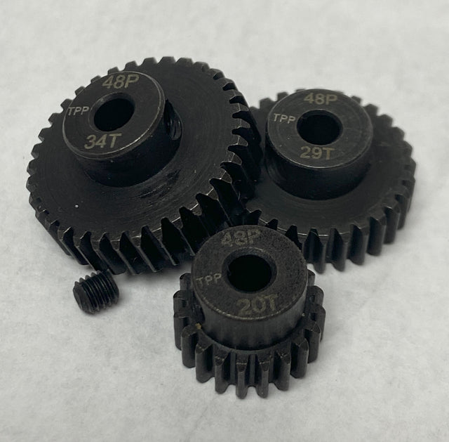 For better wear (at expense of premium performance), these quality steel 48 pitch gears are precision machined for smooth operation and are lightened as much as practical (depending on tooth count) for low mass, which translates into more power and faster acceleration at your rear wheels! Under most race conditions they have great wear resistance, and even work well outside. For MAXIMUM performance, use my hardened aluminum gears by clicking HERE.