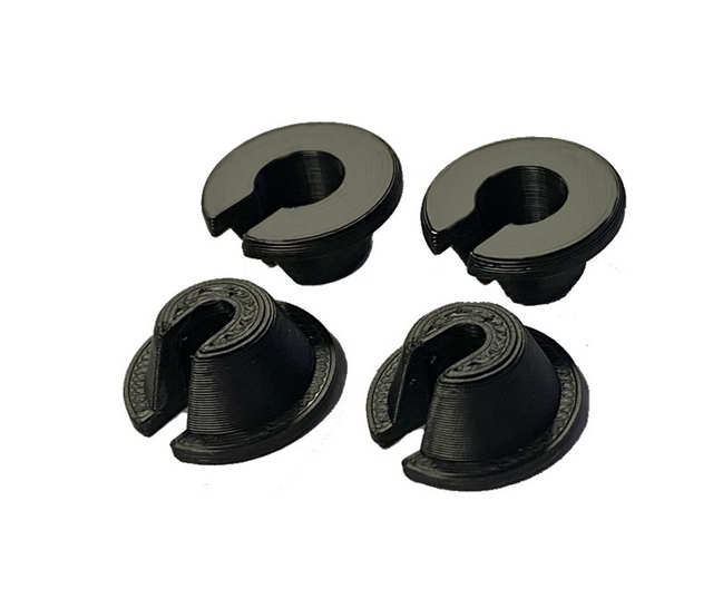 These drop down spring buckets fit all MDX Small bore shocks and lower the spring approx. 2mm allowing for additional travel. Mostly beneficial on short shocks or when running rubber tires on the Intimidator and Enforcer.